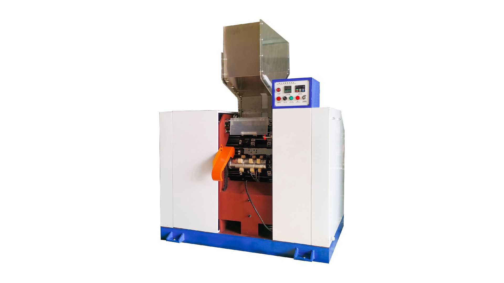 3、出料裝置增設(shè)不銹鋼接料斗,勞動(dòng)強(qiáng)度低,1人可以操作2臺(tái)設(shè)備;
